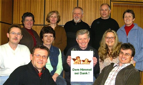 Mitwirkende: ![]() Pfarrer Josephus - Josef Thürr Traude, Haushälterin - Gertraude Spenling Gerhard Höll, Messner - Gerhard Boyer Helene Höll, seine Frau - Helene Dietmaier Hannes Engel, Pfarrgemeinderat - Hannes Pamperl Reini Bischof, Neffe von Traude - Reinhard Hogl Dr. Jüngling, Domkapitular - Johann Brandl Sandra Blum, Aerobiclehrerin - Sandra Dürnsteiner Hans Meßmer, Heiratswilliger - Johann Six Finni Rosenfeld, Lehrerin - Rudolfine Thürr Souffleuse - Petra Thürr Guter Geist hinter der Bühne - Brigitte Dick |