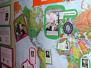 - ausgehend von Europa - auf einer Wandtafel festgehalten. |
