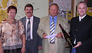 ![]() Der Bürgermeister von Wullersdorf, Herr Ignaz Pimberger, überreicht das Geschenk der Gemeinde |