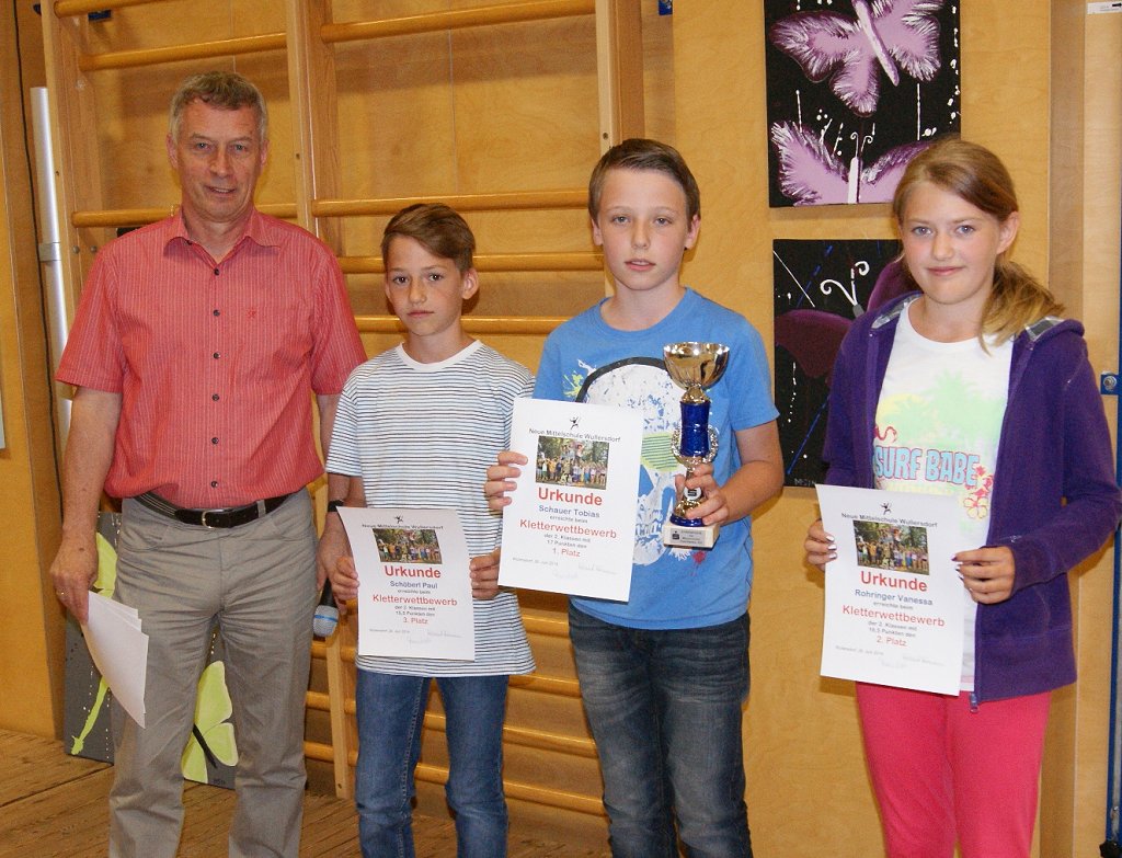 | Die Preisträger der 4. Klassen: 1. Platz: Kletzander Philipp (16,5 Punkte) 2. Platz: Mrak Marcel (16 Punkte) 3. Platz: Steinmetz Steven (14,5 Punkte) |